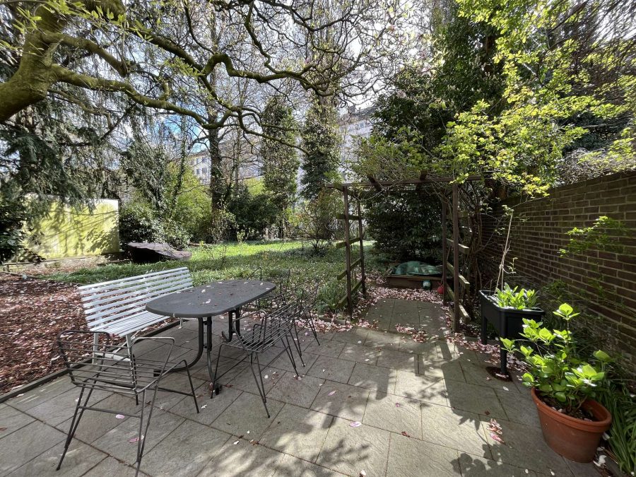 Zur Front gerichtet ist die Einheit eine Souterrainwohnung und zur Terrasse gerichtet wie eine EG Wohnung.