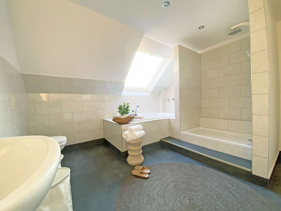 Im unteren Bereich der Wohnung befinden sich 3 Zimmer, Küche und Bad. Der obere Bereich mit einem weiteren Zimmer ist aktuell nicht als Wohnraum genehmigt und müsste dementsprechend nachgenehmigt werden.