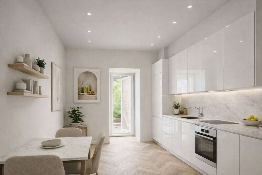 Die Wohnung wird derzeit noch renoviert, daher haben wir entsprechende Einrichtungsideen abgebildet.